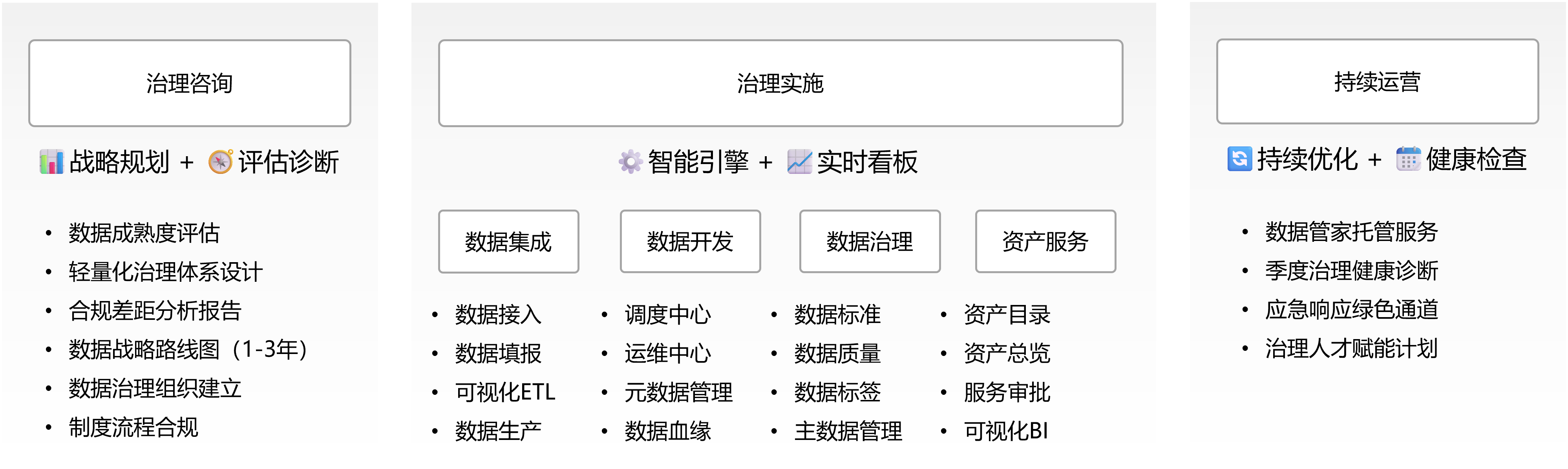 在數據驅動企業(yè)發(fā)展的當下,艾克公司“樞理”數據治理服務,以專業(yè)、系統(tǒng)的全流程方案,為企業(yè)打造高質量數據資產,筑牢數字化運營根基。